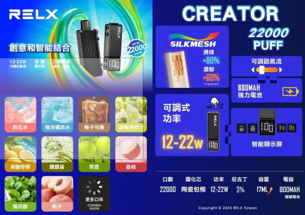 搶先評價 “【滿3盒送積木主機】RELX 悅刻 Creator 積木霧化彈 2200口超大容量 可調節功率”