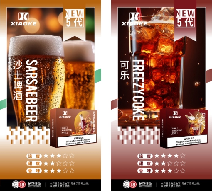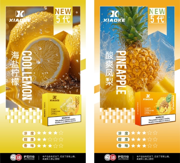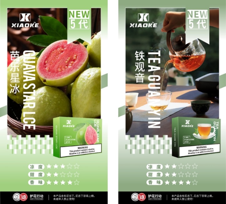 • XIAOKE 5代換彈產品 • 冰涼勁爽 超高還原水果度 • 專利技術:Acode最新超薄陶瓷芯 霧化口感細膩 爆發力強 • 2ml/顆,3顆裝/盒 • 透明奶嘴級PCTG材料,品質過硬 • 3%尼古丁系列 • 陸續驚喜口味持續上新